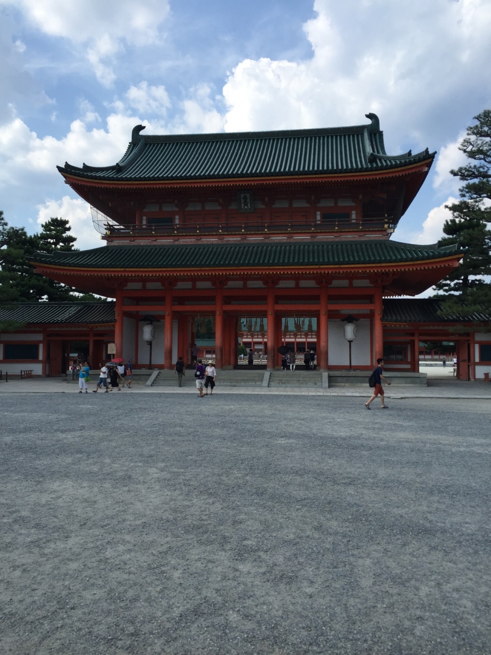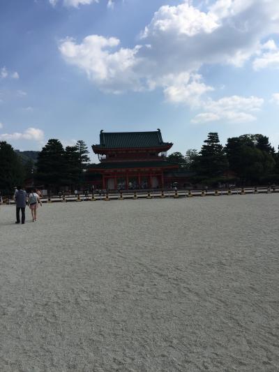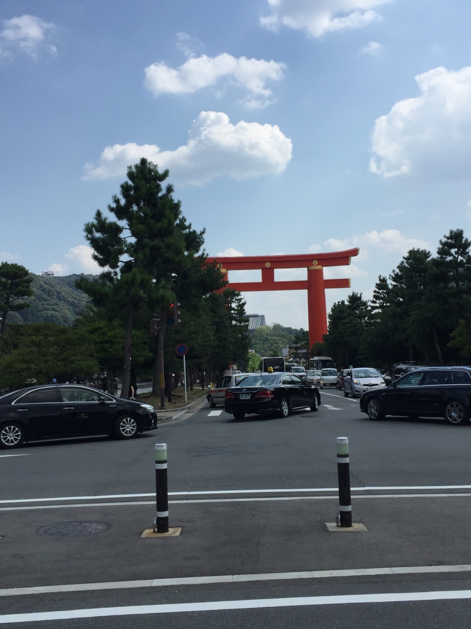 平安神宮は車で行くと東大路通りから仁王門通りを東に行くと平安神宮の鳥居が見えてきます。駐車場は近くに公園の駐車場があります。平安神宮の鳥居はとても大きく見応えがあります。平安神宮の中に入るととても広く本殿は紅色で綺麗です。