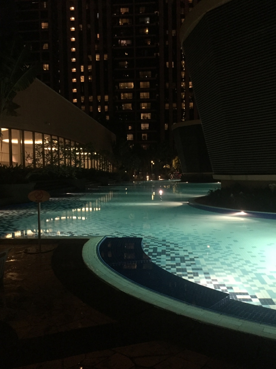 このホテルの場所は立地は良く、モノレールの駅インビの目の前にあり下の階はショッピングモールになっていて上階はホテルになっています。このホテルはとても広く初めての時は迷いそうになりますが所々に警備員が常駐しているので教えくれます。客室も広く景色も良いです。ですが設備少し古さを感じられます。