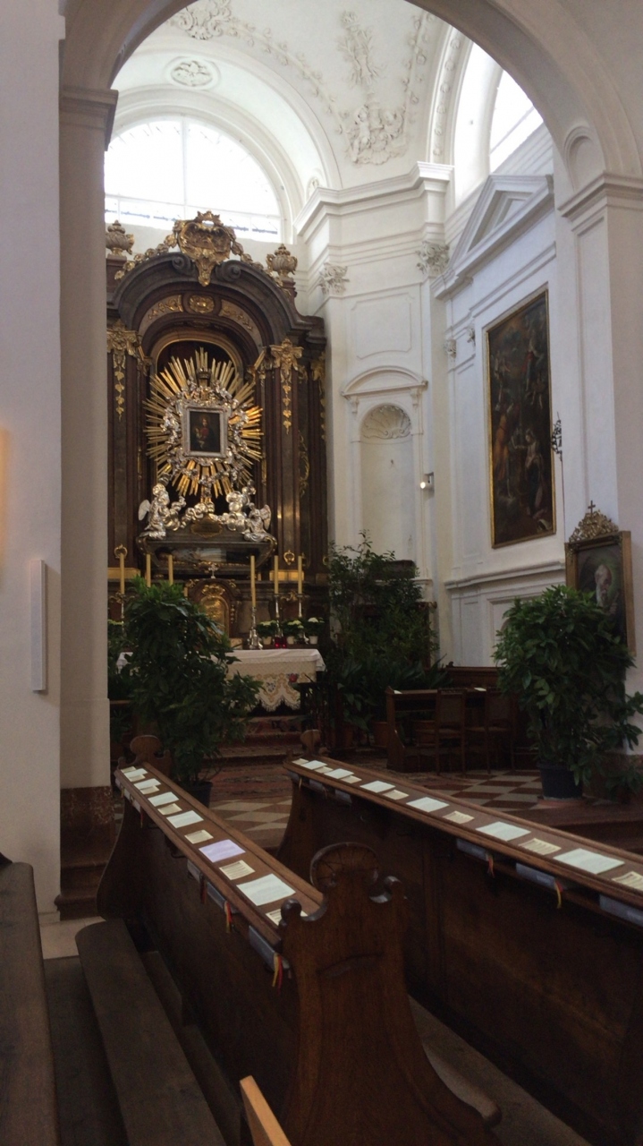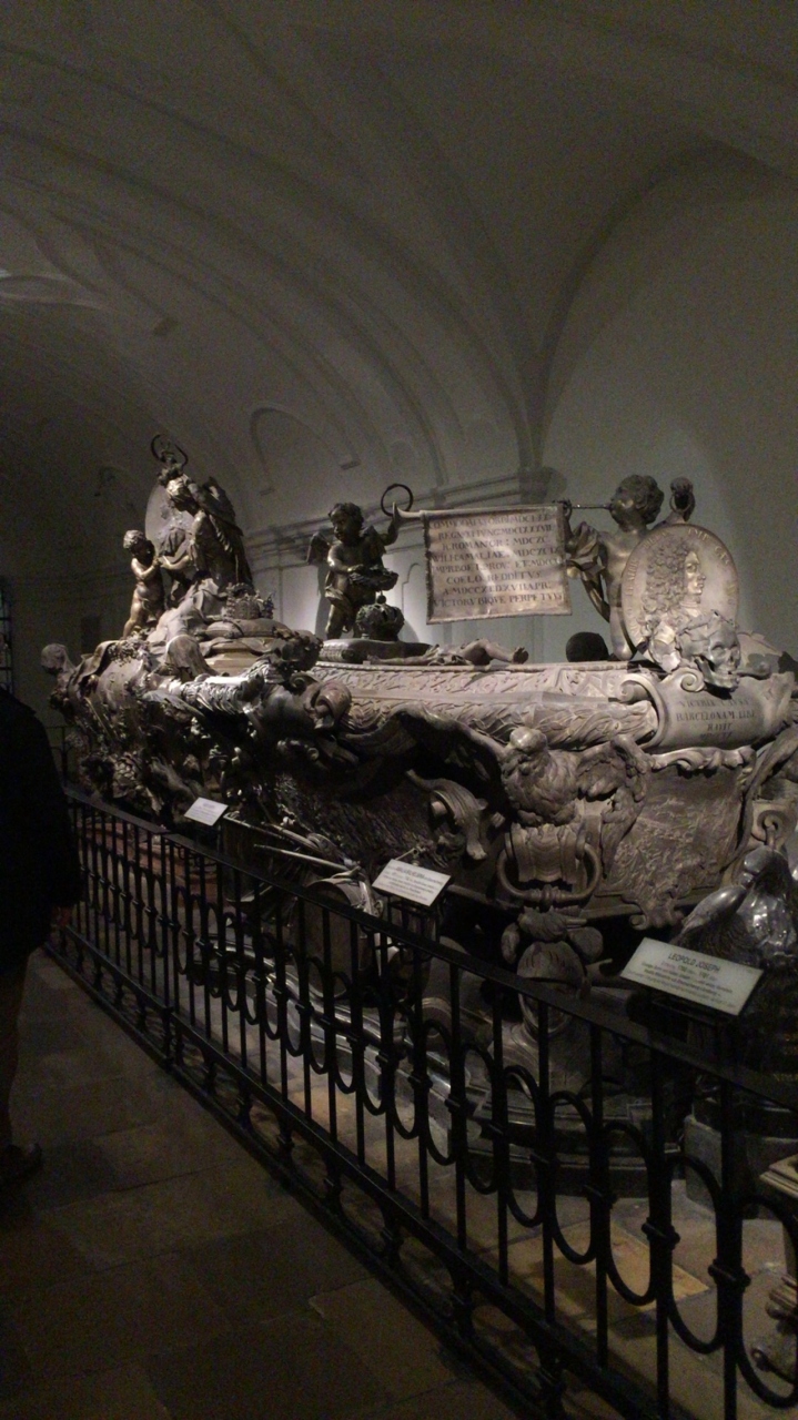 この教会はケルントナー通りから一本裏の通りにありカールスプラッツの駅から歩いて5分位の所にあります。この教会の地下にはハプスブルク家代々の棺が安置されています。地下に降りるとすぐに棺が見えてき、皇帝などの棺はとても豪華で見入ります。