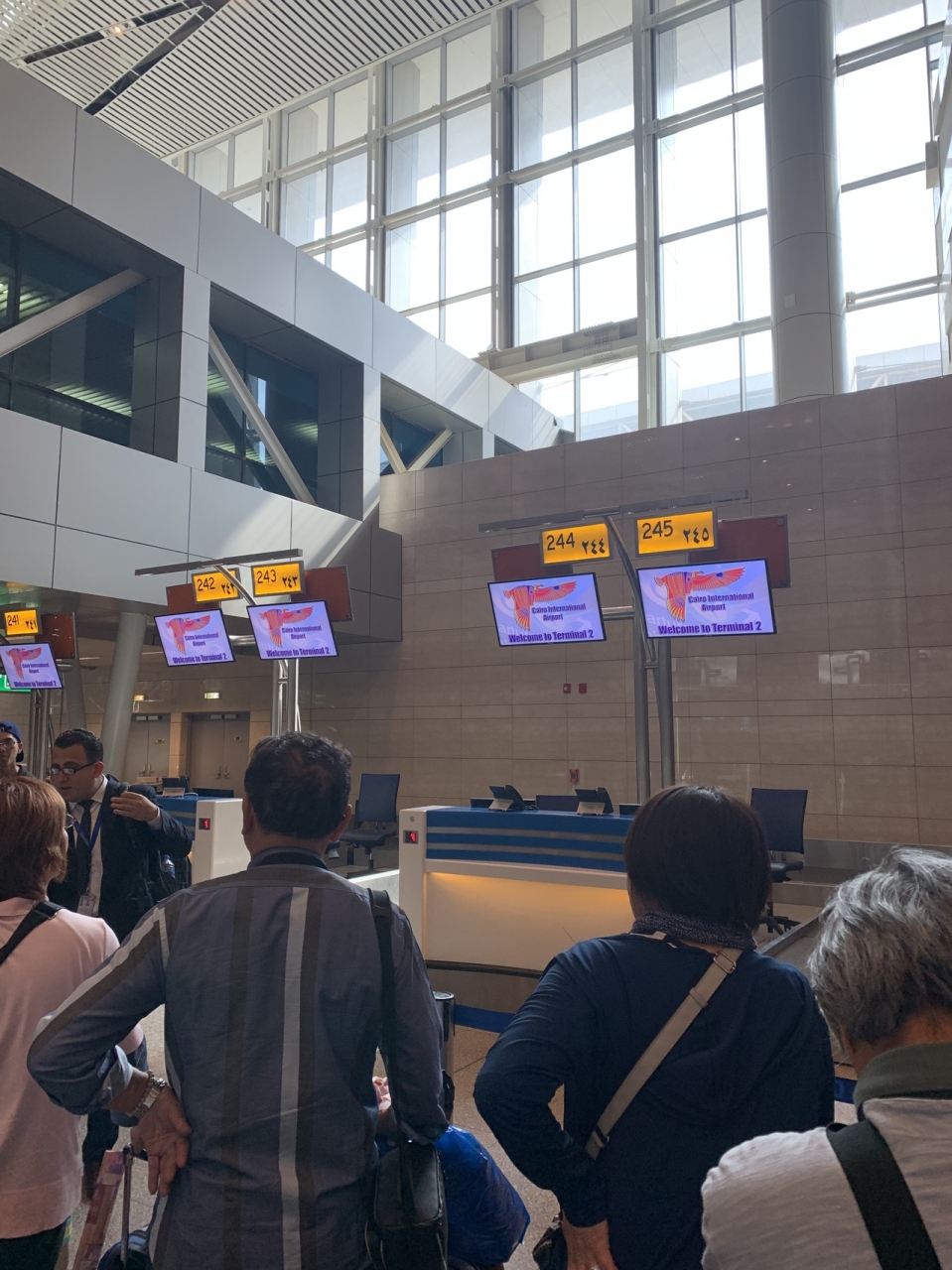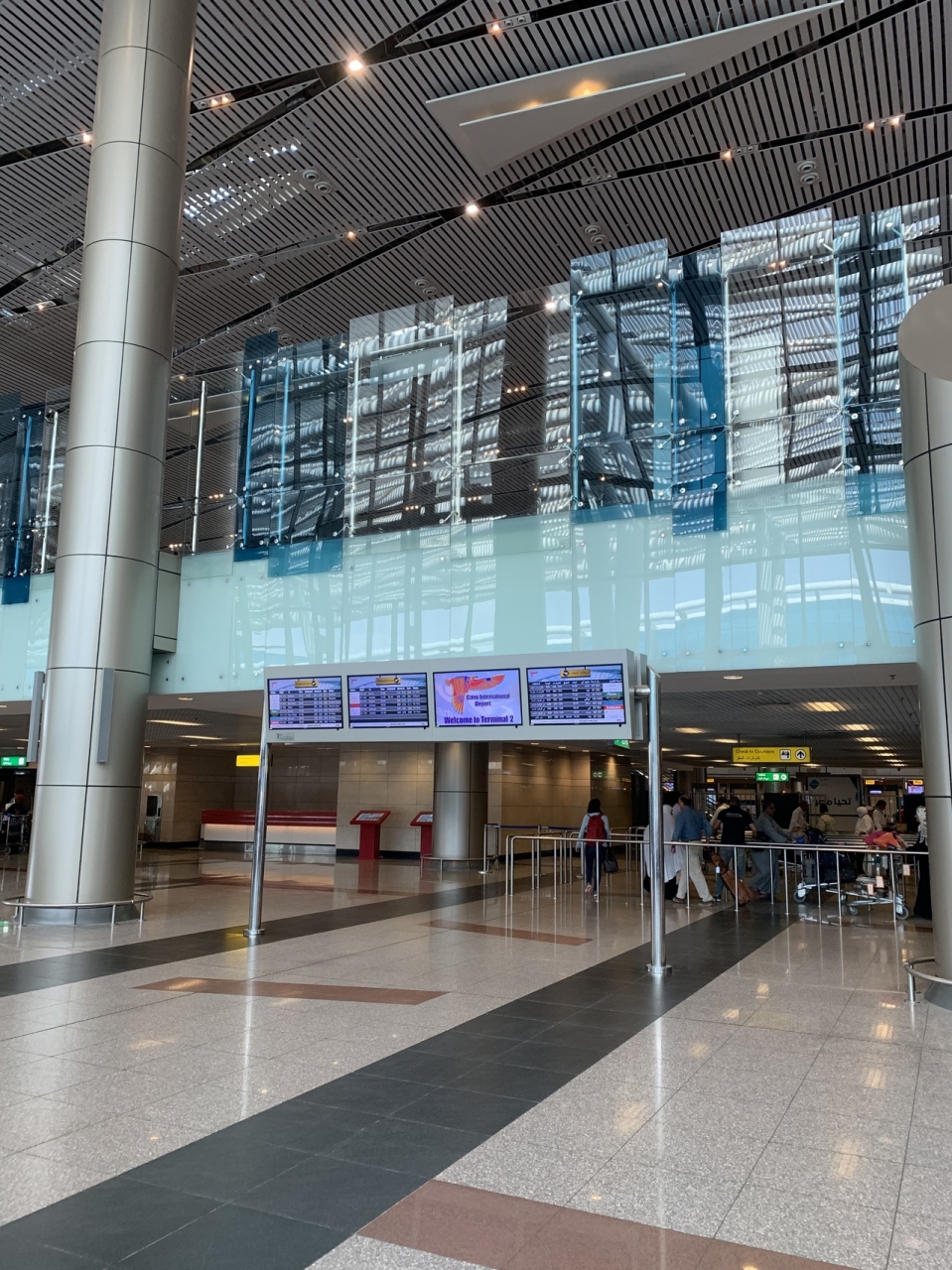 この空港はカイロに行く時に利用しました。早朝の便だったせいか、空港内はガラガラガラであまり人もいませんでした。搭乗口まではセキュリティーが2回あり空港内に入るのに名前やパスポート番号など記帳させられました。