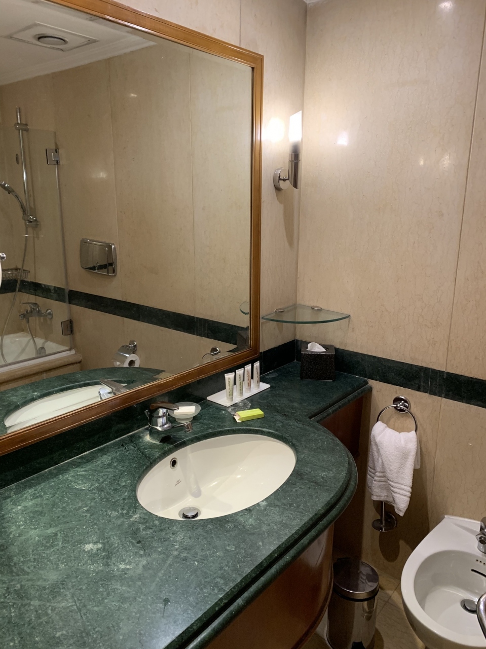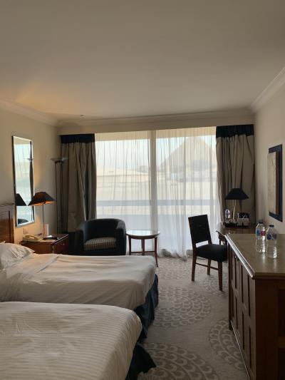 このホテルはギザのピラミッドが見える位近くにあり泊まった部屋からはピラミッドが見えました。ロビーは広く綺麗でソファーもいくつもあり他には飲食店が何店舗かあります。客室は綺麗で浴室のシャワーの水圧やお湯の出も良かったです。wihiは部屋でも使えるのですが、微妙に遅いです。
