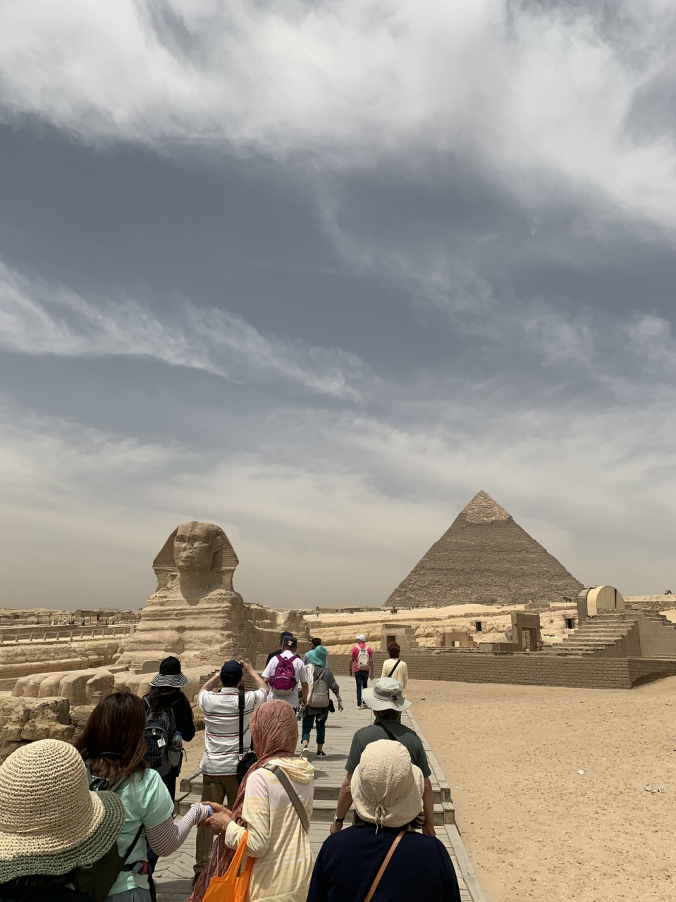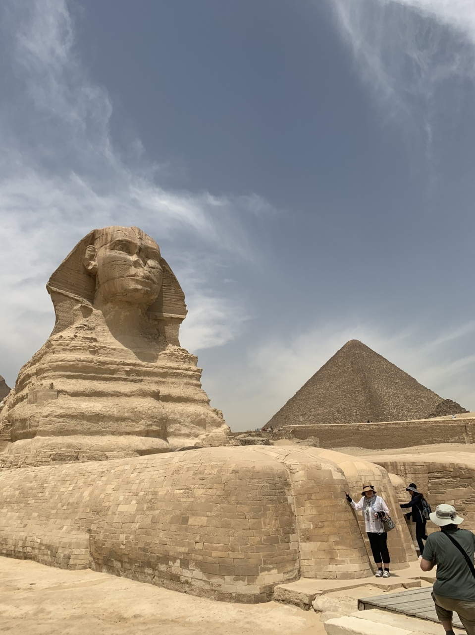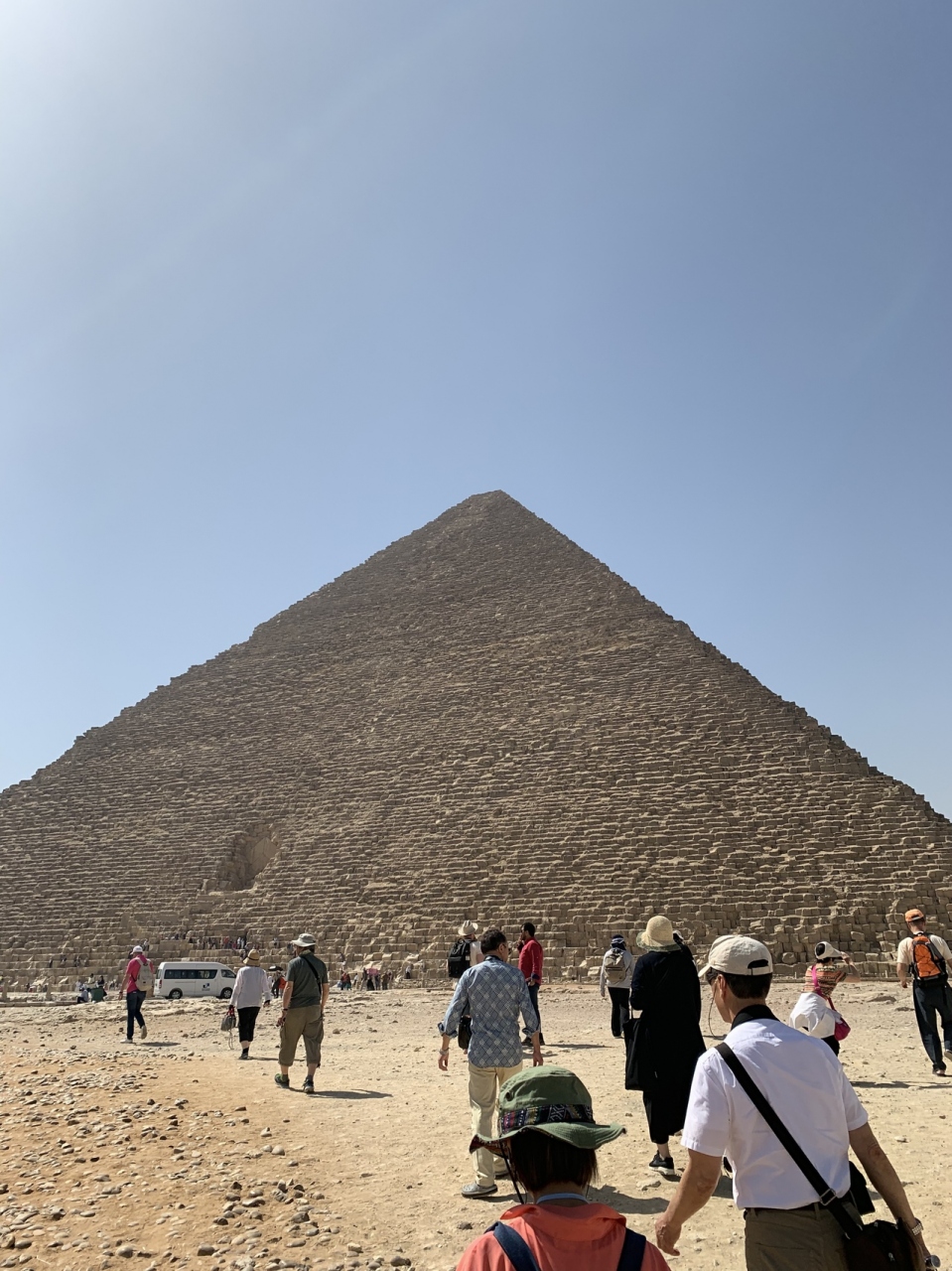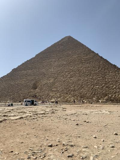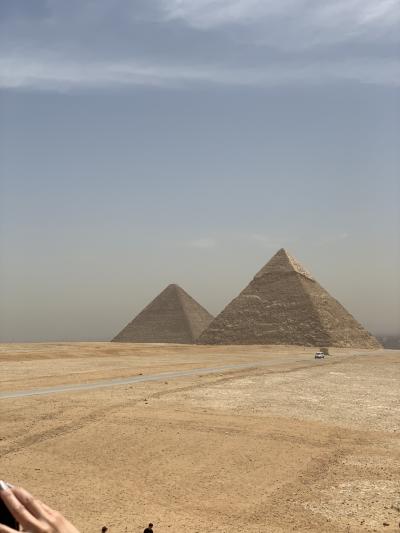 このピラミッドはギザの三大ピラミッドの中でクフ王ピラミッドの次に大きなピラミッドです。頂上の辺りには化粧石が残っていて段々になってなく斜めになっています。ピラミッドは昔は化粧石で囲われていて段になって無かったらしいです。他のピラミッドなどと一緒に見るピラミッドは壮大で見応えがあります。