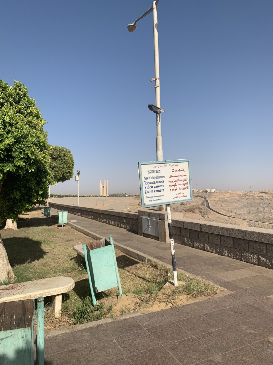 このダムはアスワン空港から車で10分位の所にあります。ダムの真ん中位の所では写真など取れる所がありそこからはとても景色が良く果てしなく湖が見えます。記念塔は巨大な塔で離れた所からでもとても大きく見えます
