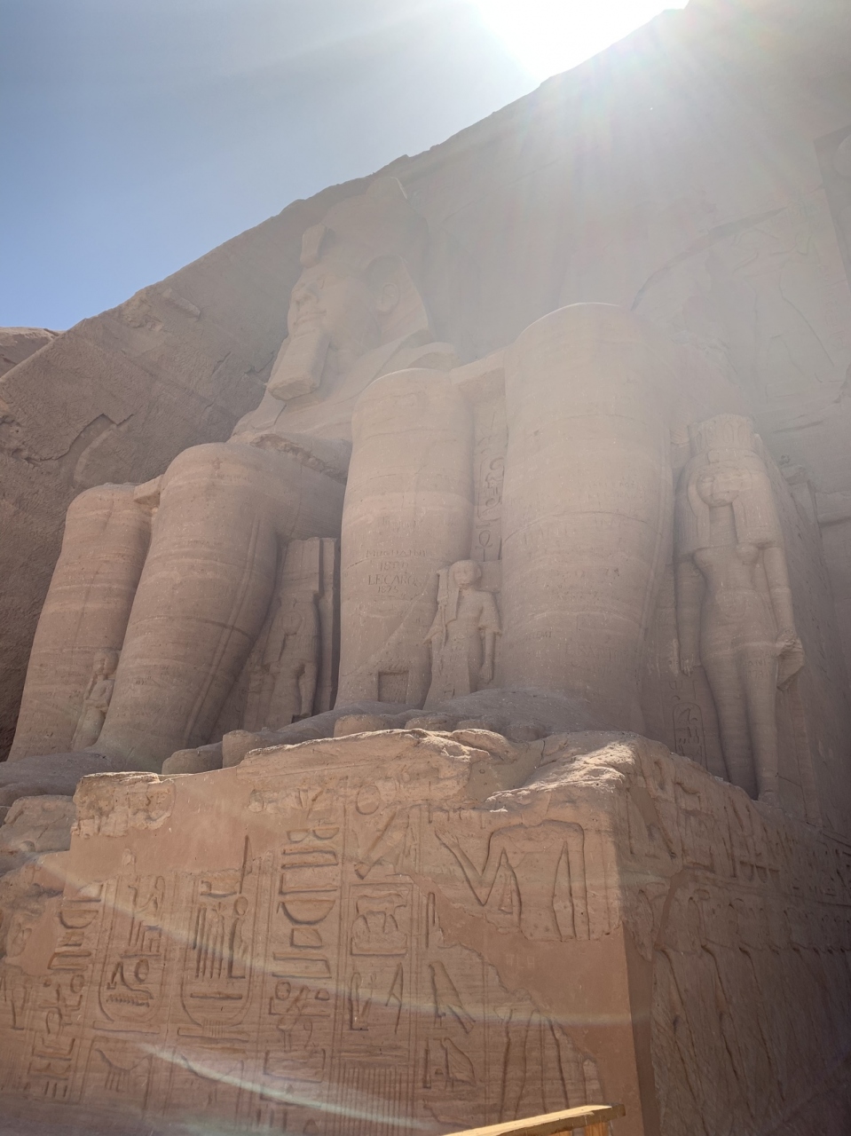 この神殿は周りには何も無く湖しか無い所にあります。入り口からは神殿は見えませんが少し歩くと神殿の前にある巨大な像が見えてきます。正面から見る神殿は巨大で圧巻です。内部も巨大な柱や壁画がありとても見応えがあります。