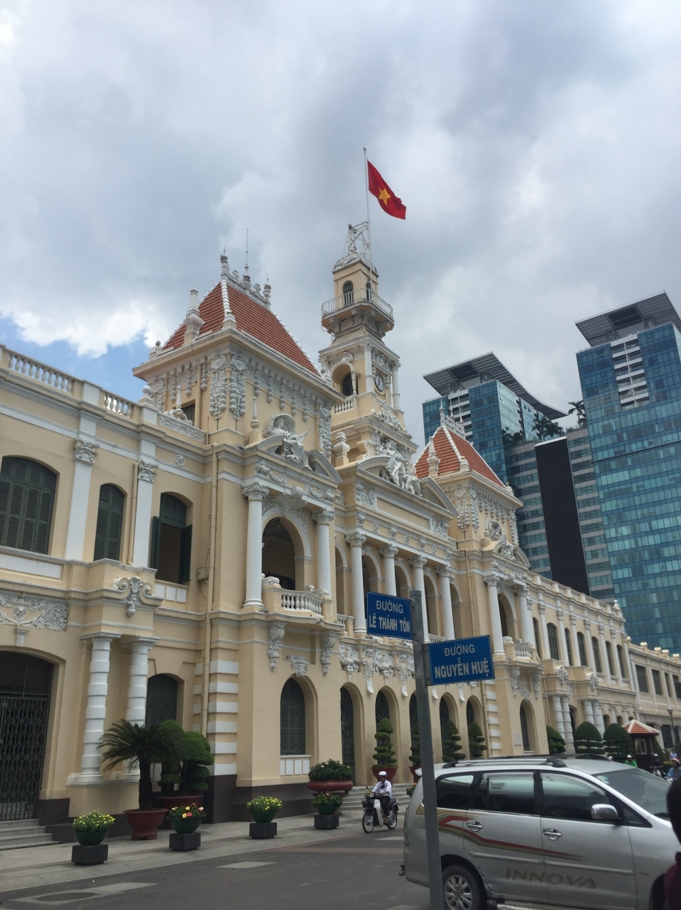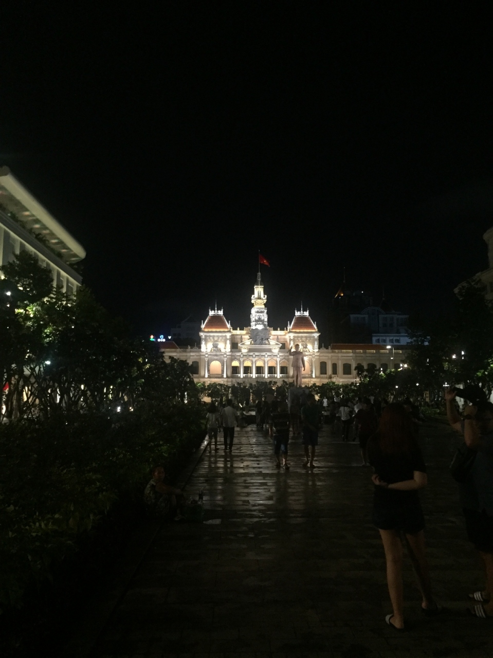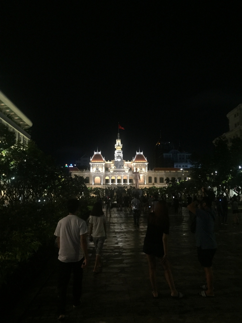 この庁舎はグエンフエ通りの突き当たりにあり、大教会や郵便局から歩いて5分の所にあります。外観しか見れないですが綺麗で見応えがあります。特に夜にはライトアップされ綺麗に見えます。グエンフエ通りのホーチミン像のバックに見える庁舎はオススメです。