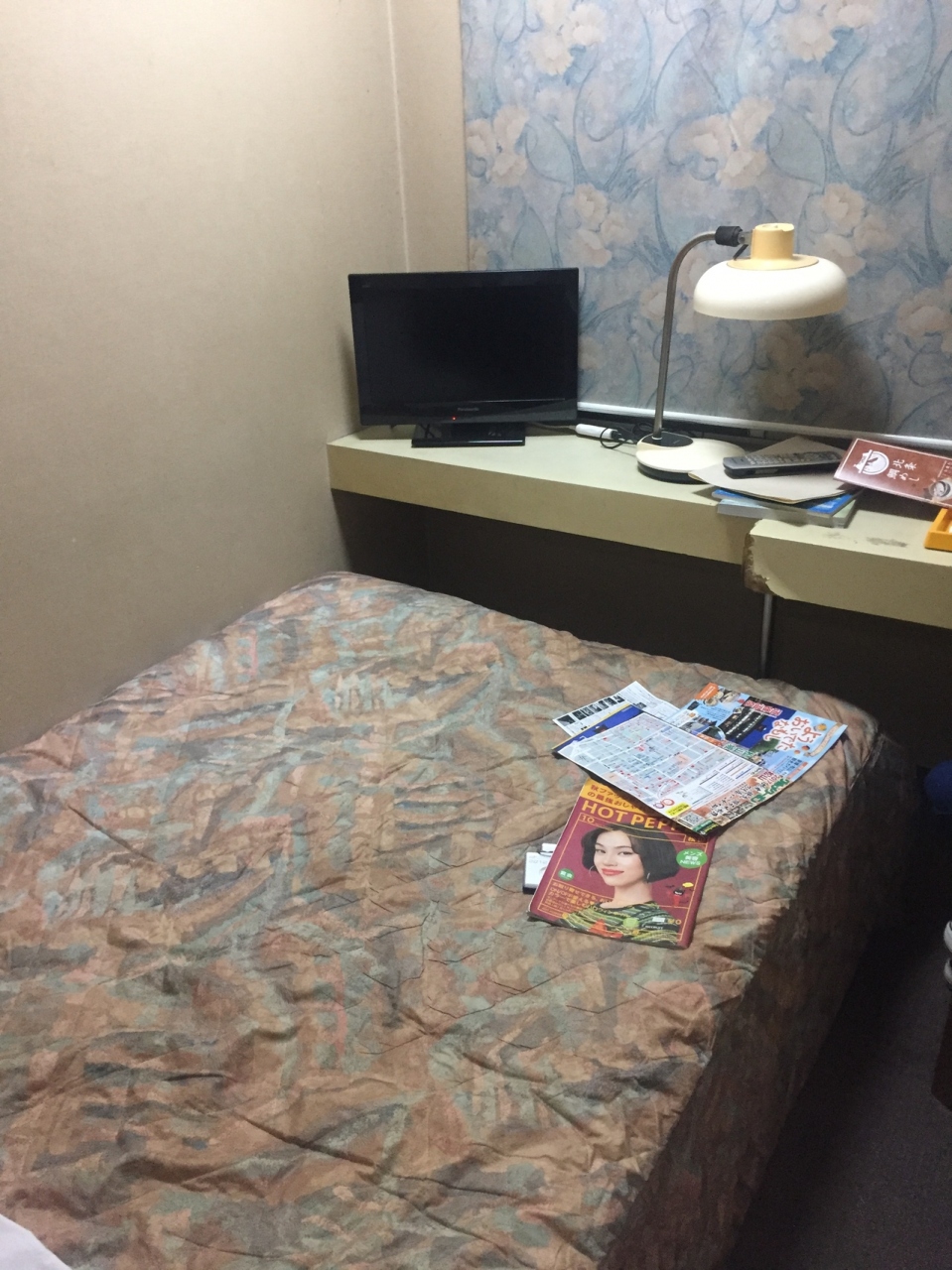 このビジネスホテルは松山駅から歩いて5分もかからない所にあります。駐車場はホテルの近くにあり有料です。このホテルは連休と言うのにとても安く一週間前にとれました。夜にホテルの前に着くと外観がとても薄暗くわかりづらいです。客室は残念な事にタバコ臭く薄暗い感じがし、ものすごく狭いです。