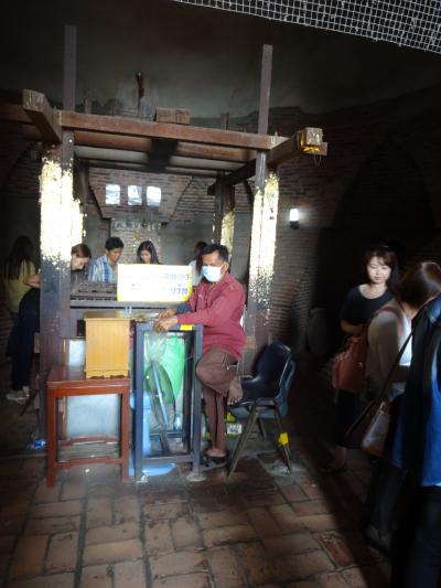 登りきって仏塔の内部に入ると、中で金箔を売っています。