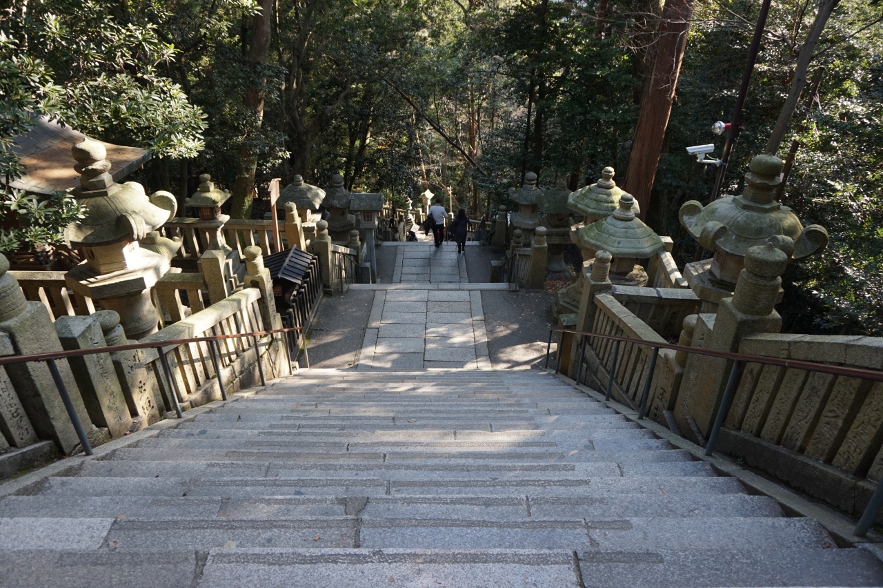 一の坂の鳥居を8時半頃くぐったので人はあまりおらず、