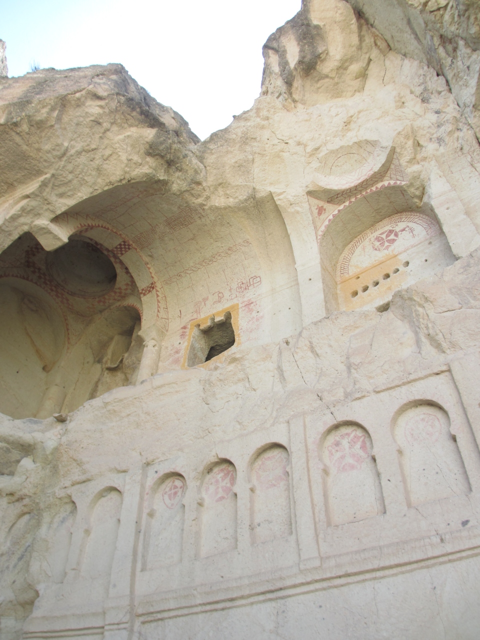 外から見ると穴の開いた巨大な岩にしか見えませんが、中に入ると豪華なフレスコ画があったりします。
