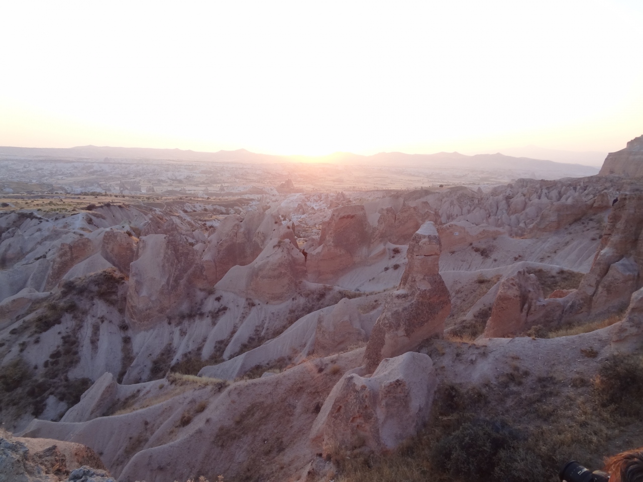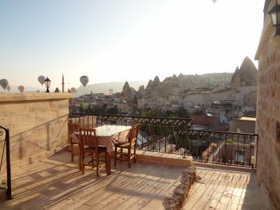 朝は、奇岩とたくさんの気球がとんでいるのが見えて、感動しました。