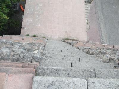 円形の塔は真ん中が空洞になっており、ところどころ柵が壊れていて、下を覗き込むと足がすくみました。