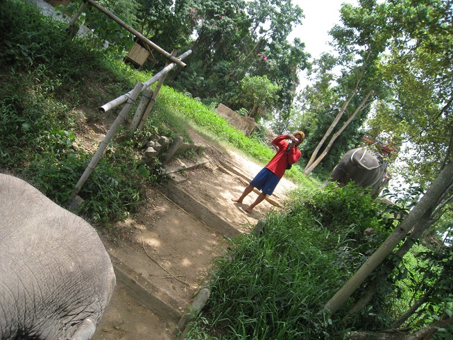 帰りは、象使いさんにカメラを渡すと、象から飛び降り、帰り道ずっと写真を撮ってくれます。