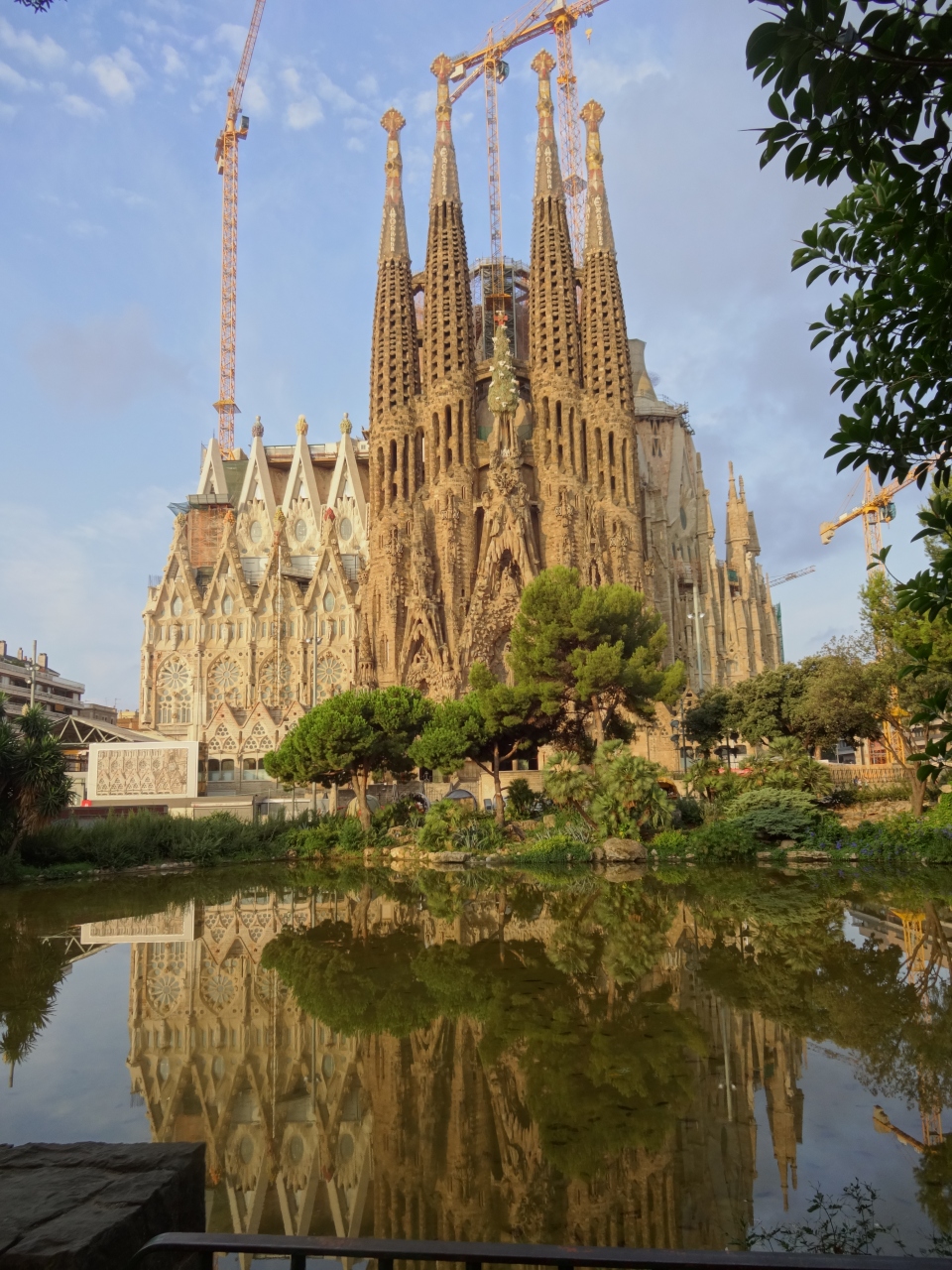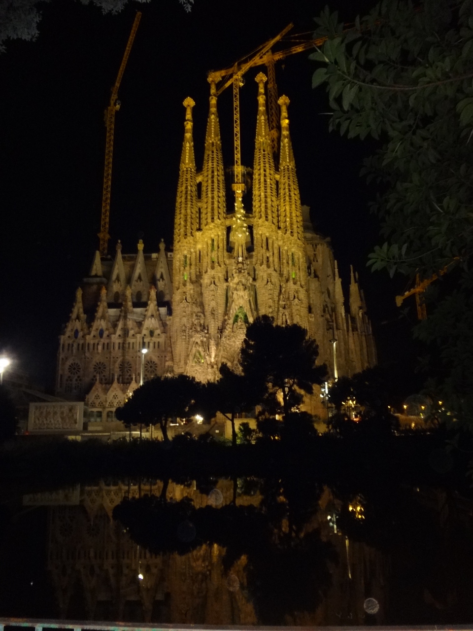 夜は夜で、ライトアップされたサグラダファミリアが水面に映り、美しかったです。- 旅行時期