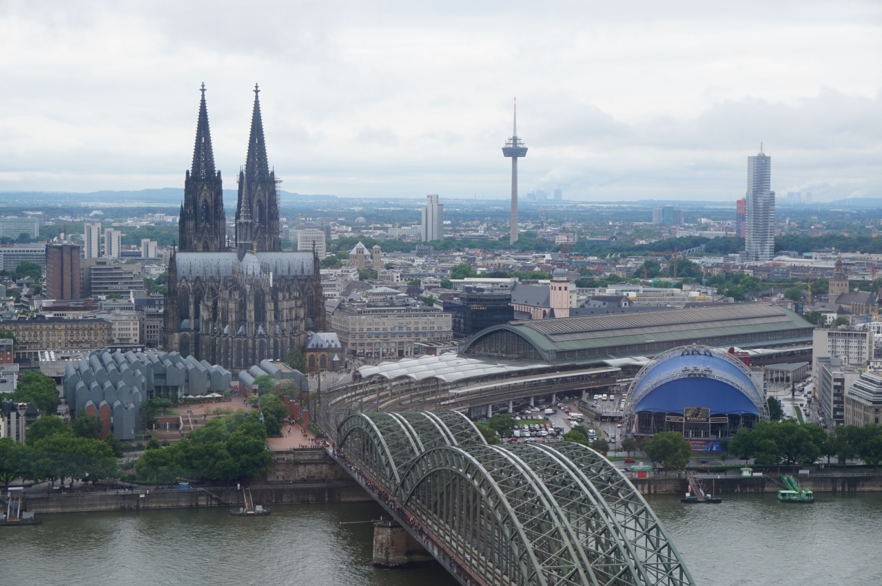 ケルン大聖堂から川をはさんで向こう側のケルントライアングルパノラマという展望台で大聖堂を眺めてから近づこうという計画です。
