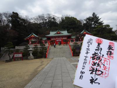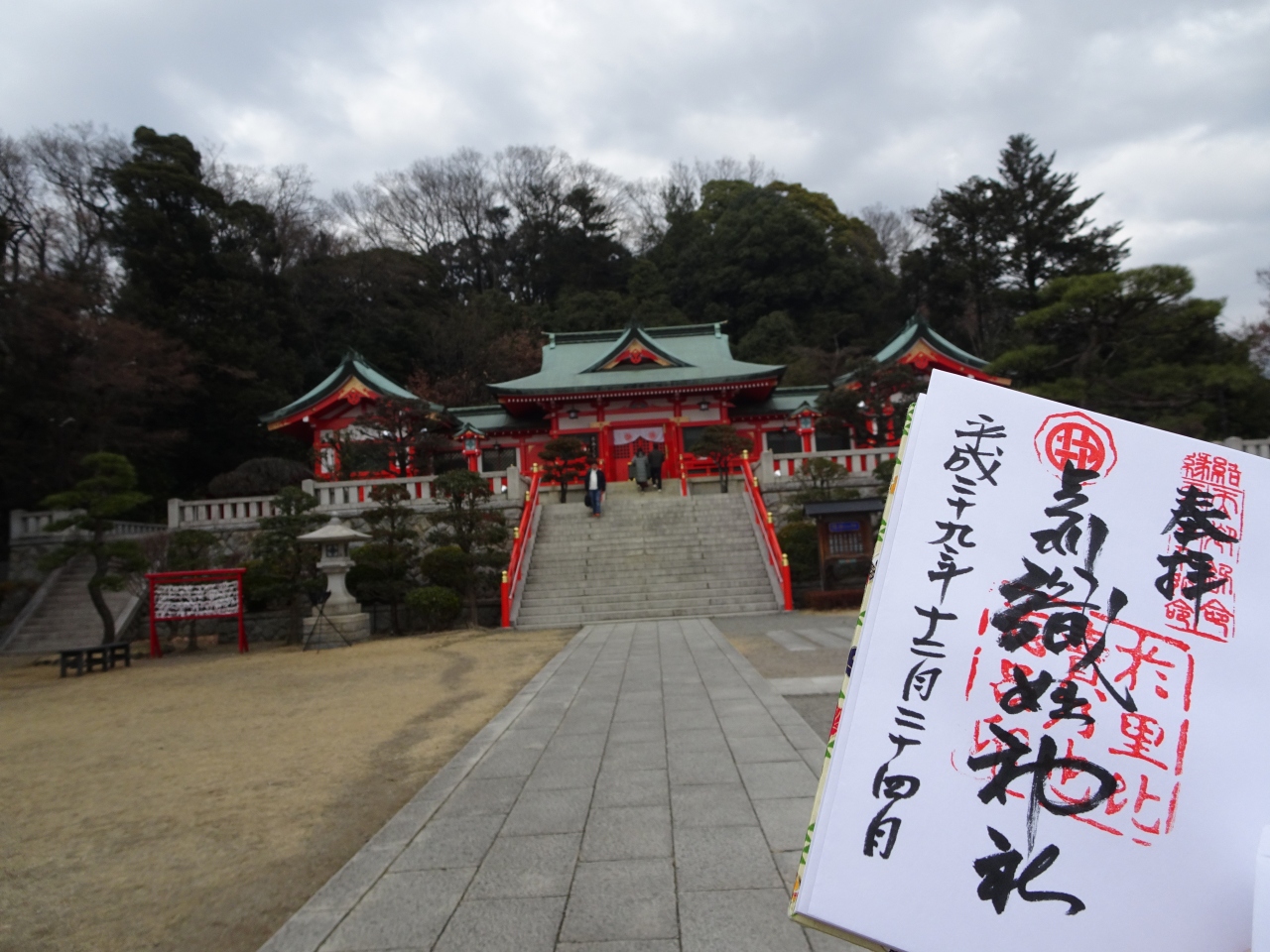 登りきると予想よりも広大な敷地があって、朱塗りの拝殿が美しかったです。