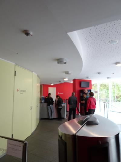 駅を出るとすぐにガラス張りの三角形の建物あるのですぐわかります。