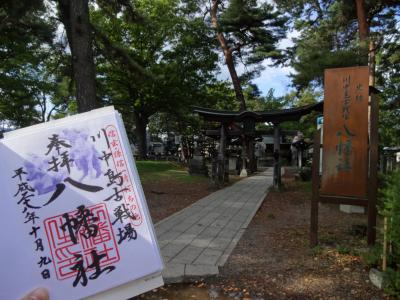 八幡社で御朱印を頂くと、一騎打ちの銅像や、「一騎打ちの地」の文字や「川中島古戦場」という文字が入っています。ただ、神に印刷されているタイプでした。- 旅行時期