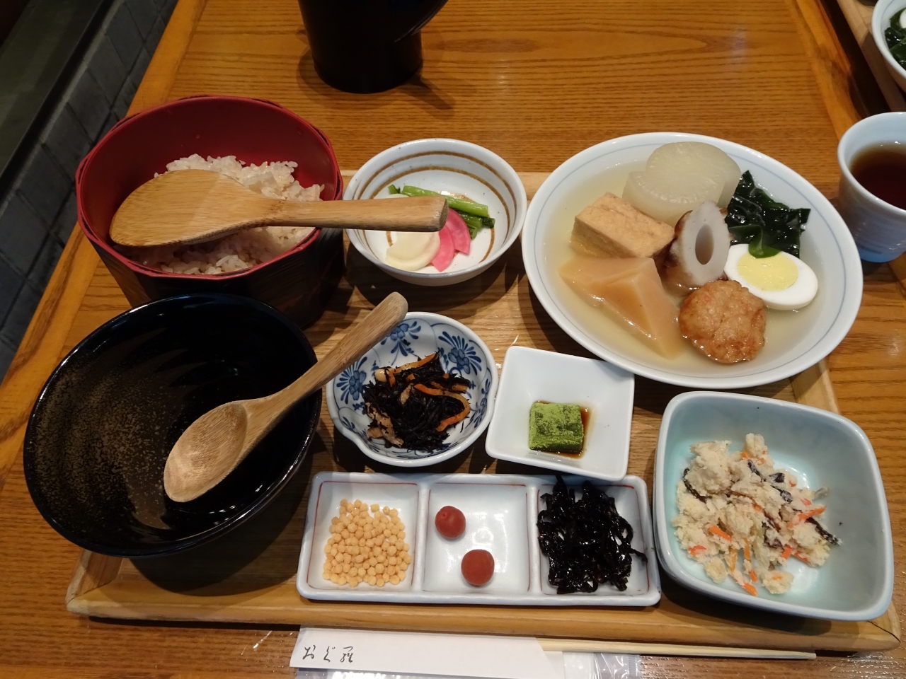 おでんの定食を頼みましたが、だしの味が優しくおいしくて、小皿もすべておいしく