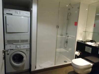 バスルームにはバスタブがなかったのは残念ですが、シャワールームの左側の扉を開けると、ドラム式乾燥機付き洗濯機が取り付けられており、とても便利でした。