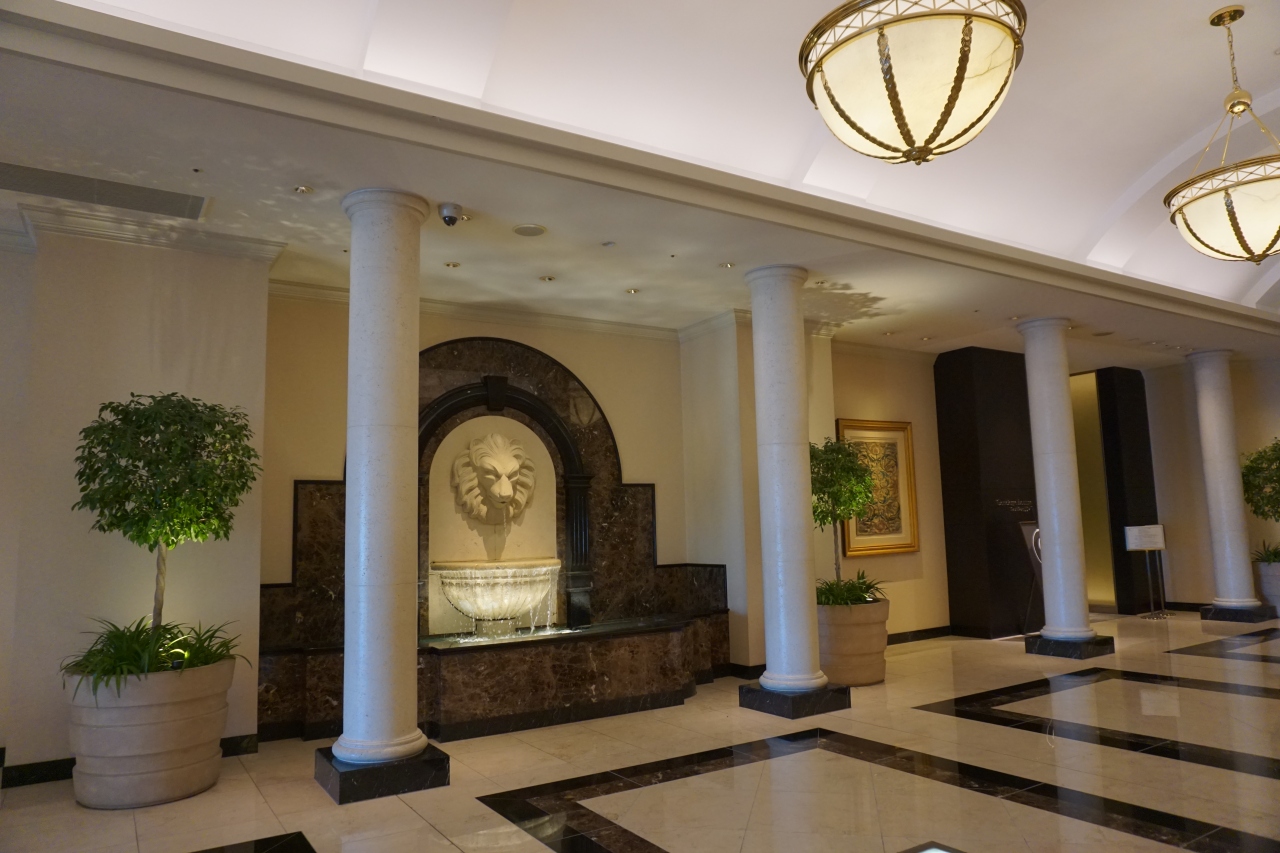 ほぼ駅直結で豪華なシャンデリアが朝食会場(兼宴会場)にあります