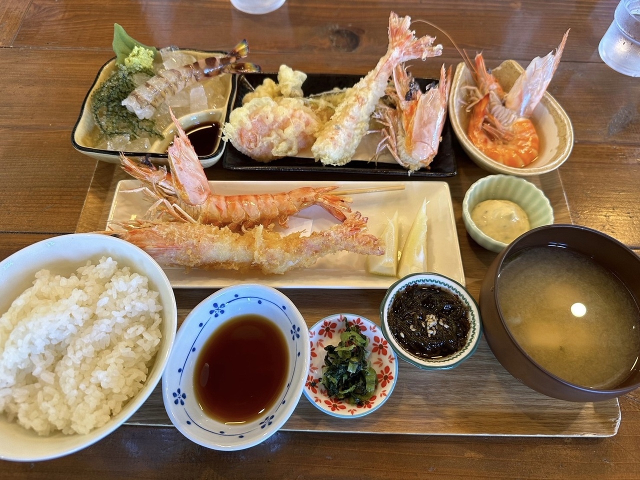 沖縄に行った際には絶対に行くと決めていたお店、ようやく行くことができました。まずは車えびの大規模な養殖場が目に飛び込んできます。オシャレな店内。えびのサイズもいろいろ選べます。刺身、塩焼き、天ぷらどれも最高に美味しかったです。