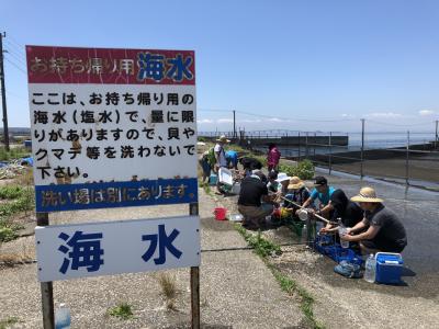いくつかある潮干狩り場の中からチョイスしました。入場券は事前にコンビニで買うことができます。入退場に関してはおじさんたちがしっかりと管理しているようです。いざ潮干狩り場へ。掘れどほれど見つからず。意外と難しいものです。見つけるのに苦労しました。あまりの少なさに退場する時におじさんたちが追加で入れてくれそうでしたがちょうどなくなってしまったようでした。足の洗い場、貝の洗い場等もしっかりとあるので安心です。肝心のアサリは活きがよく美味しかったです。来年またリベンジしたいです。