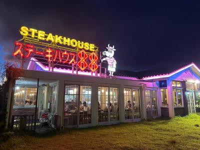 美ら海水族館の近くにあるステーキハウス88美ら海店。観光客で混んでいます。それでも回転が早いのかあっという間に案内されました。ステーキには基本的にサラダバー、ライスバー、スープパー込みのようです。赤身肉美味しい、柔らかい。舐めてました。沖縄来たら毎回来たいです。