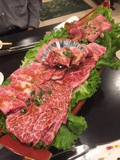 刺身の船盛は有名ですがここでは焼肉が乗っています。