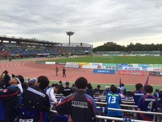 陸上競技場と一緒なんでグランドは遠く感じます。