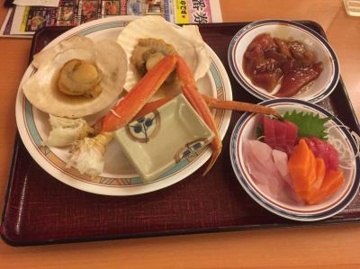 ズワイガニや海鮮浜焼き、お刺身、天ぷらなどがありました。