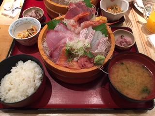 注文した刺身定食は1200円くらいで大満足のボリューム。