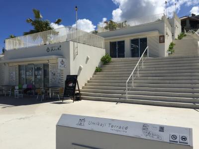 瀬長島にあるウミカジテラスは白が基調のオシャレな空間。