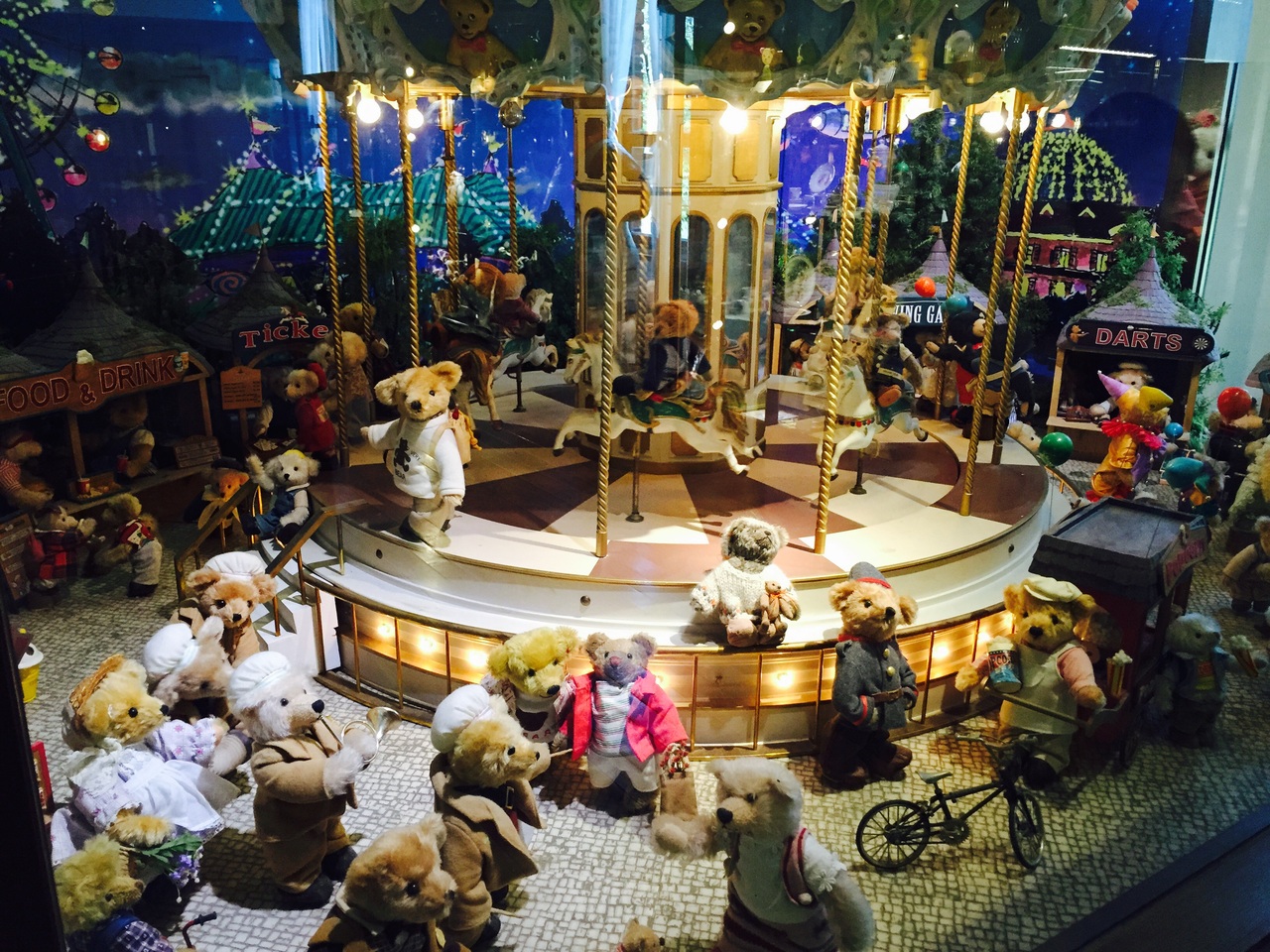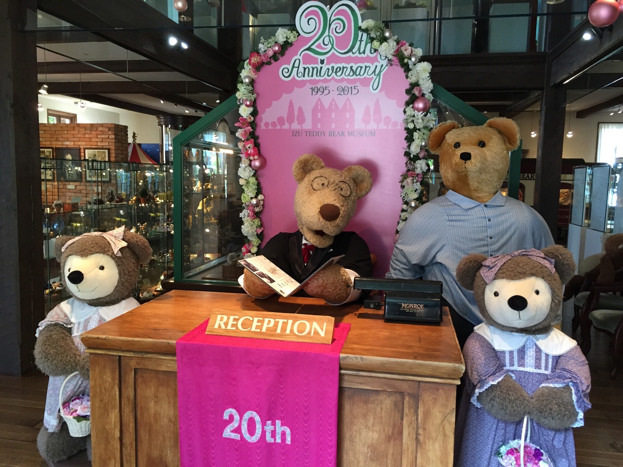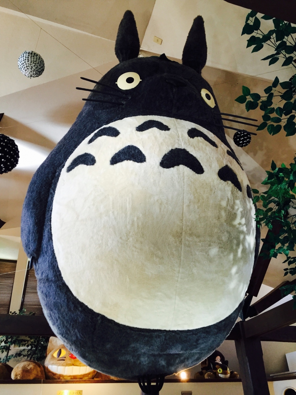 名前はテディベアミュージアムですが、お目当ては完全に期間限定のとなりのトトロ展。テディベアの方はさらっと見て二階に向かいます。天井からぶら下がっている大きなトトロがお出迎え。大迫力!娘は大興奮!猫バスでの記念撮影も嬉しい。懐かしいシーンが再現されていてなかなか楽しかったです。気がつくとほとんどのお客さんが二階へ。お土産ショップ、カフェなどもあります!