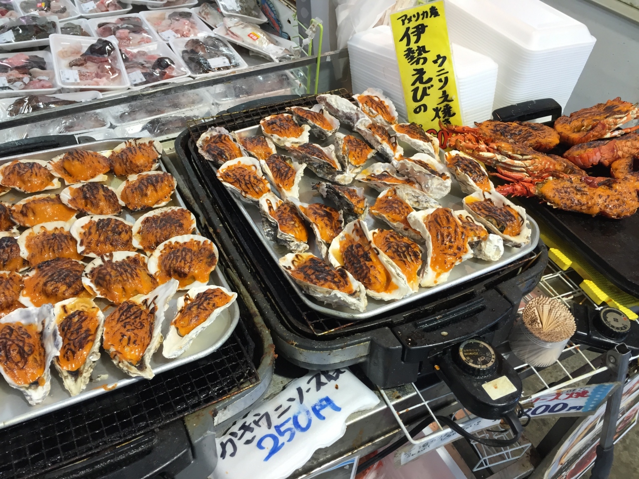 店内、入ってすぐのところにはいけすの中に新鮮な貝がたくさん入ってました。