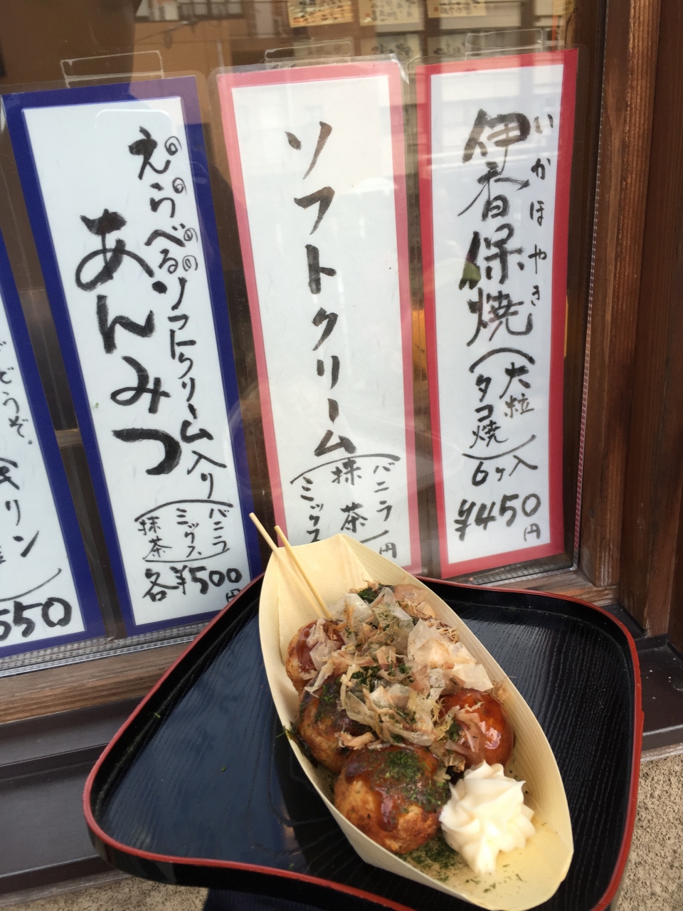 有名なのは伊香保焼き。たこ焼きですが、伊香保で作っているから伊香保焼きになるのでしょう。外はカリカリ中はふわふわでなかなかおいしかったです。