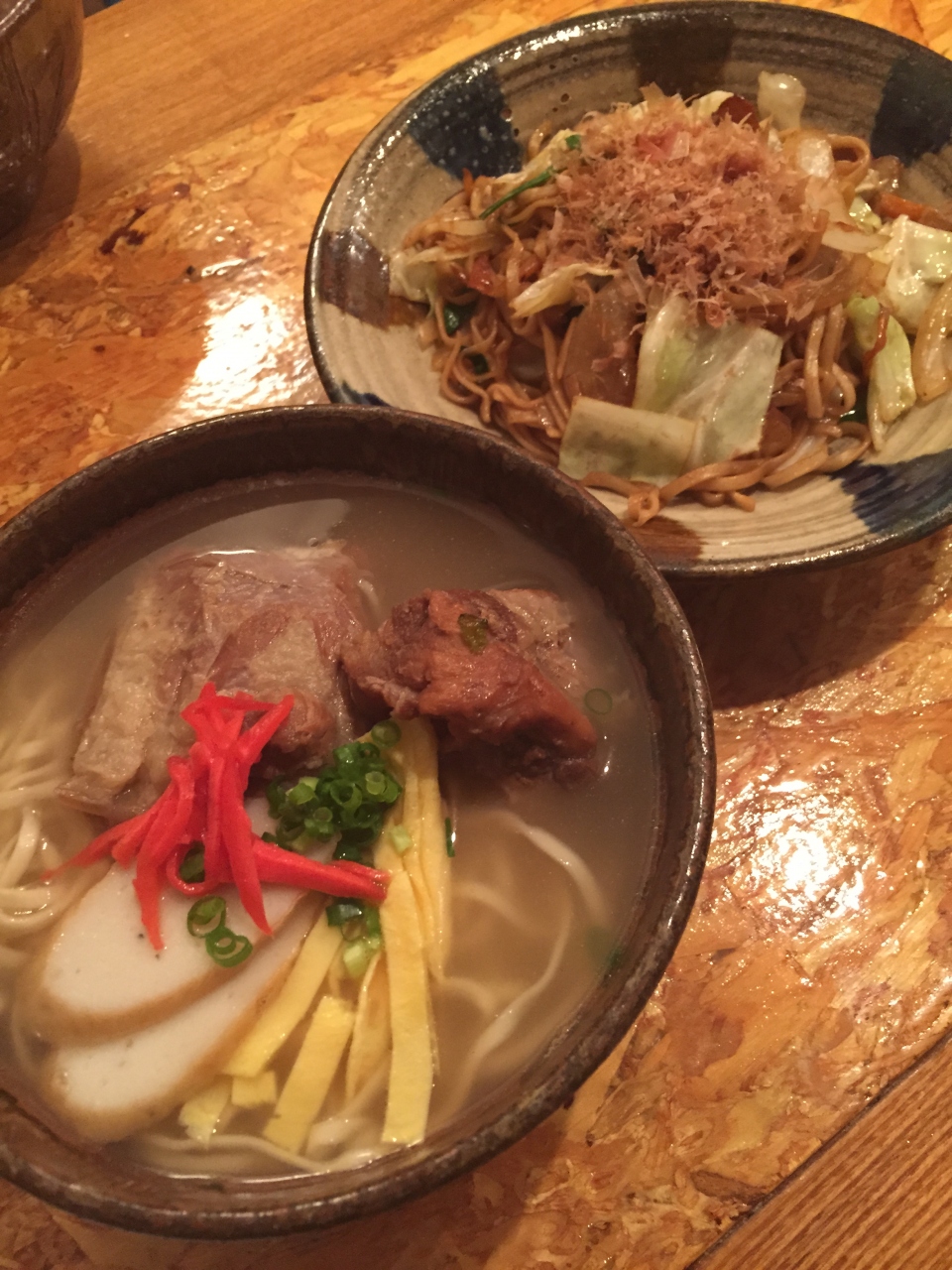 沖縄そばと焼きそばを注文。驚きと感動はありませんが、沖縄に来たんだと実感します。