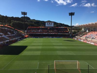 ピッチと観客席は近く臨場感あふれるスタジアムです。