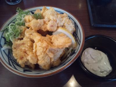ぶっかけうどんの上に大きな鶏天が4つ。