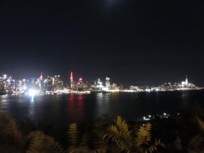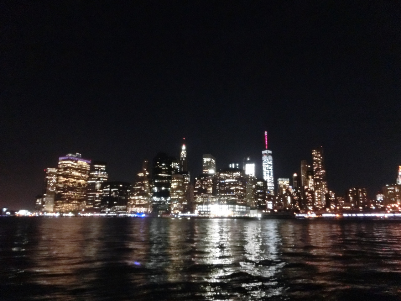 振り返るとマンハッタンのビル群。遠くには自由の女神。