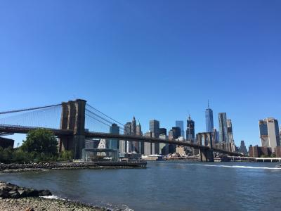 ニューヨークの風を感じながら振り返ればマンハッタンのビル群。