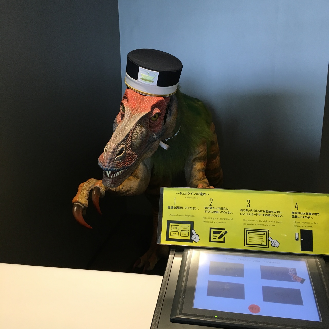 ロボットが従業員のホテルということで受付を3タイプのロボットから選べます。