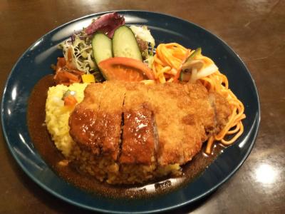 なんでこれをトルコライスと呼ぶのか謎ですが、サフランライスの上にとんかつが乗り、その上にカレーソースがかがっています。