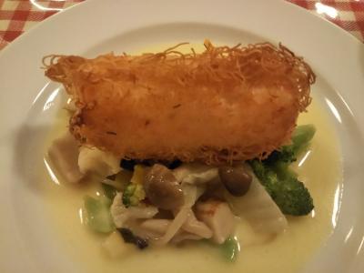 ランチメニューは4種類から選べましたが、私は「海老ムースのカザイフ包み焼き」にしました。