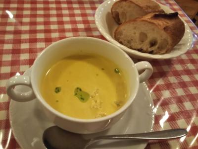 パンorライス、カボチャのポタージュスープ、コーヒーor紅茶のAセットで1,200円でした。