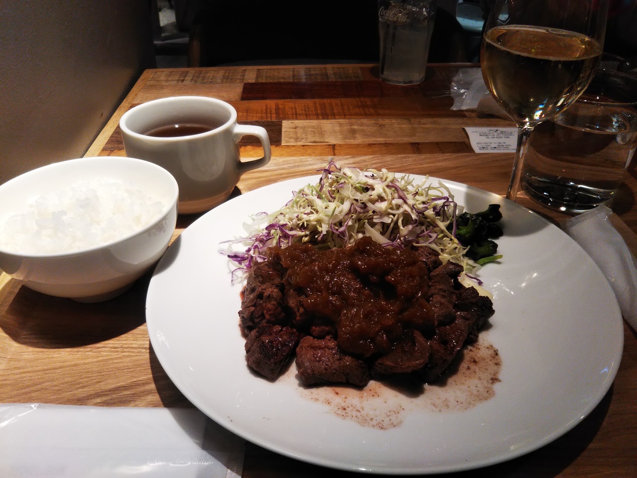 餃子のお店でしたが、ランチメニューで推していたハラミステーキを注文しました。