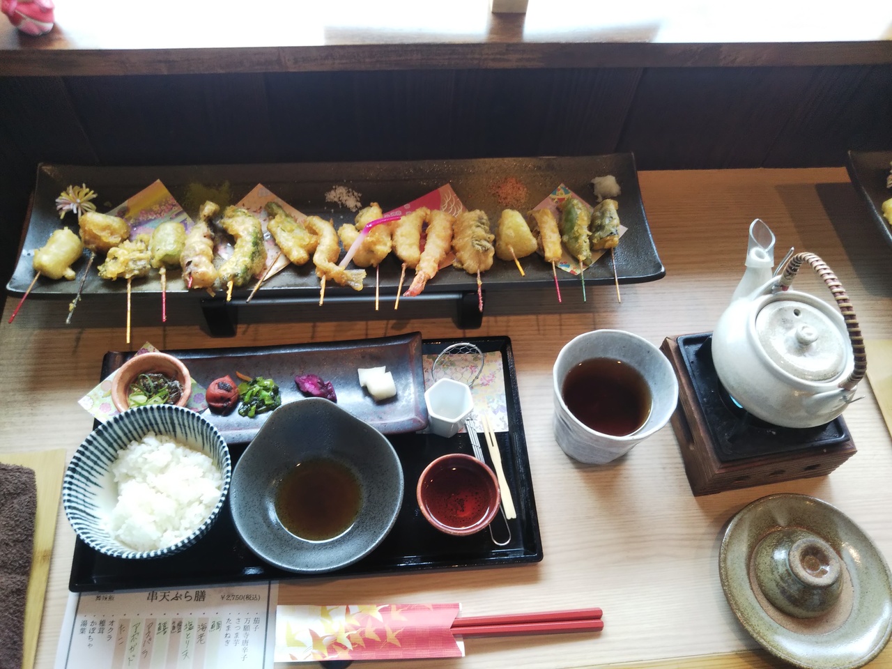 お昼のランチは一種類だけ。このひとくち天麩羅膳のみです。