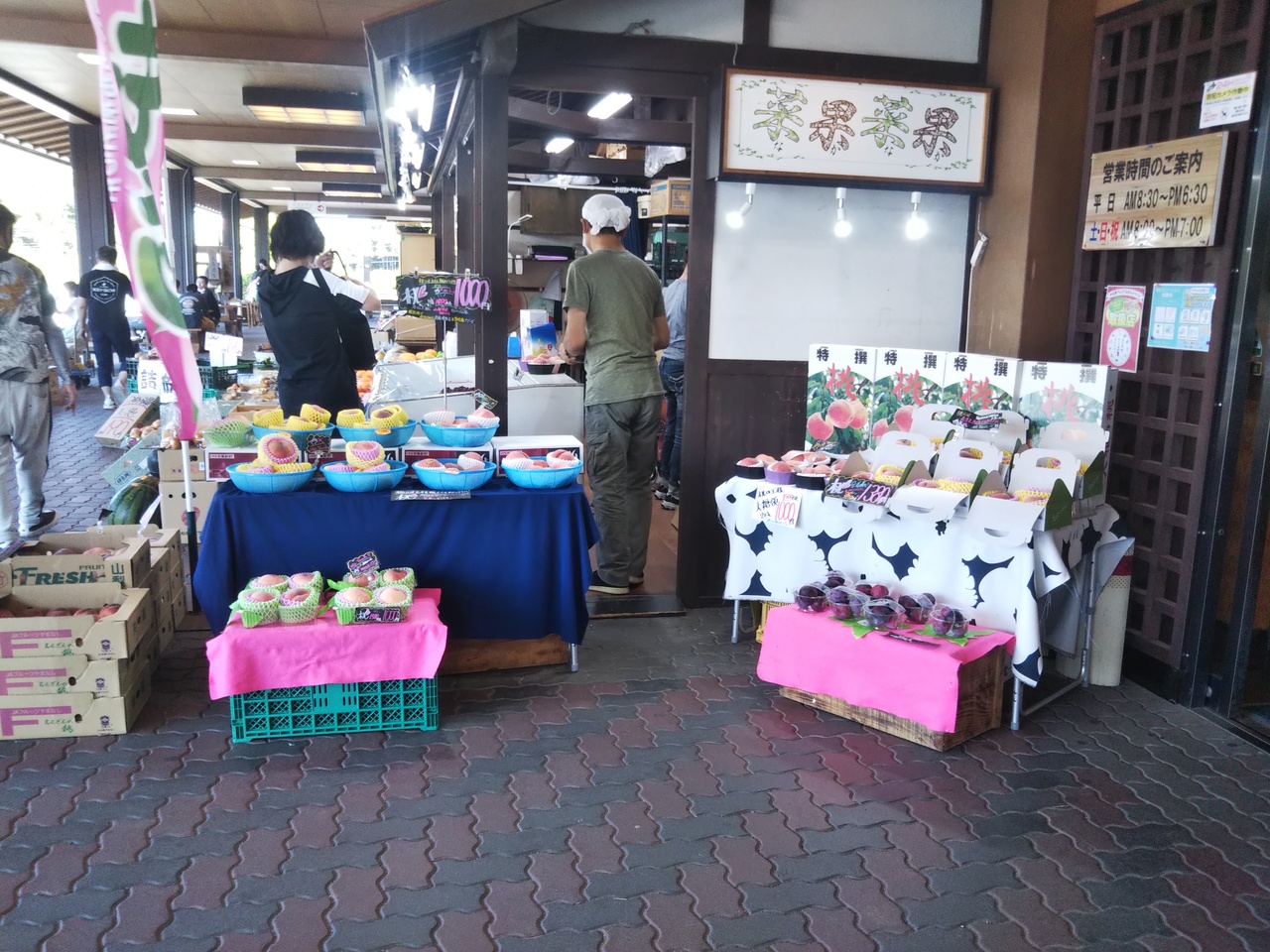 店外には美味しそうな旬の桃や、玉ねぎがかご一杯に盛られて、とてもお安く売られていました♪ヽ(´▽`)/- 旅行時期