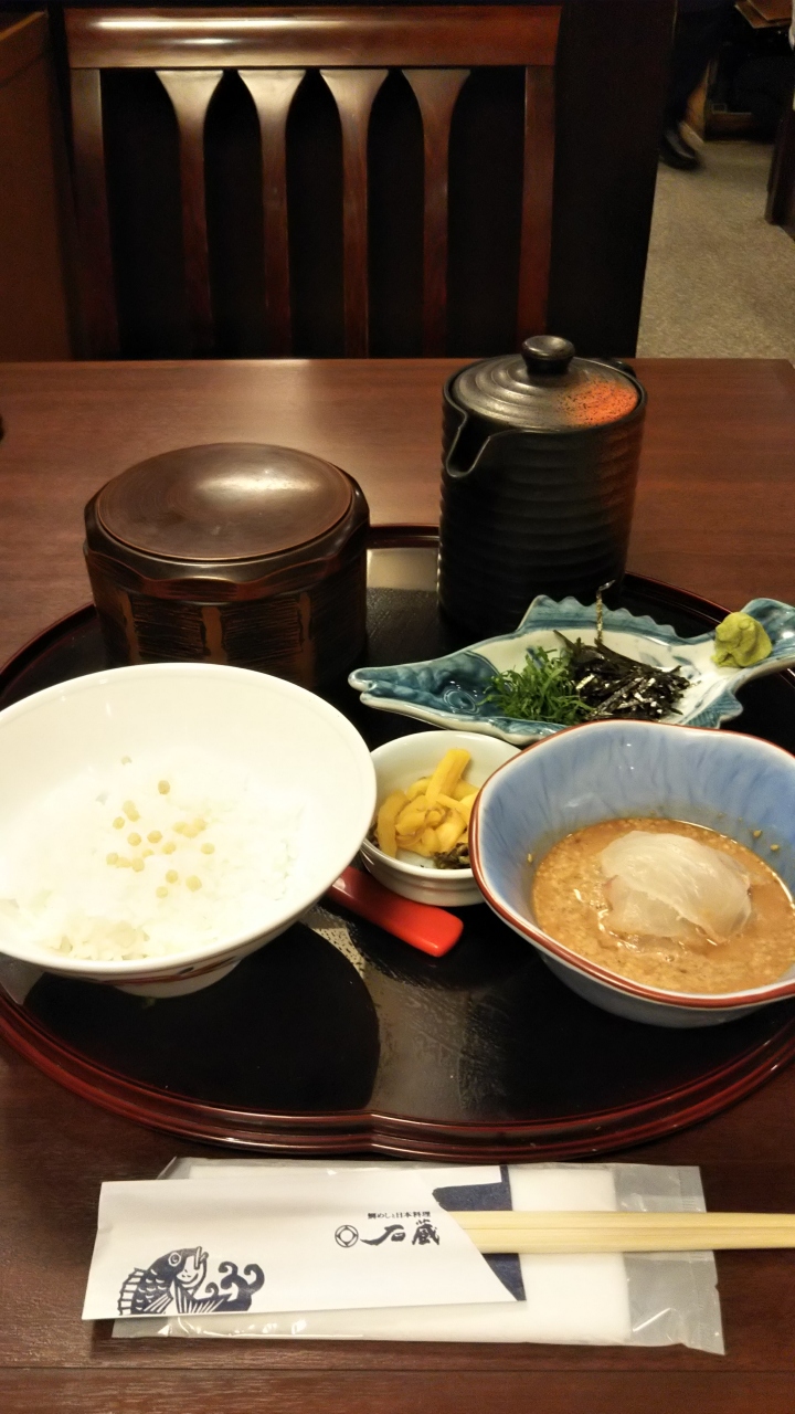 たぶん、朝食で鯛茶漬けを食べに来る人が多いのだと思います。私が行った時には10時回っていましたので既に朝食は終了しており、ランチメニューでした。ランチでは天麩羅が人気のようです。博多に着いたばかりで、期待していた鯛茶漬けを食べたかったので注文したのですが、やはりランチとなると(朝食と同じ内容でも)1300円となっており、割高感はぬぐえませんでした。とっても美味しかったですけどね(^^;