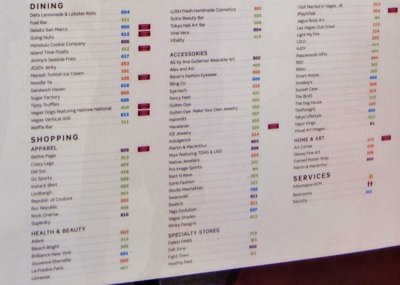 ラスベガスの奇抜なホテルと比べると 面白味はないように感じてしまいますが… レストランやフードコート、ショップなど ひと通りはそろっています。