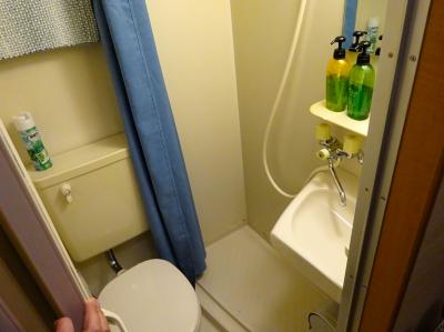 今回利用したのが トイレと一緒のカーテンのみで仕切る洗面台と一緒の簡易シャワー